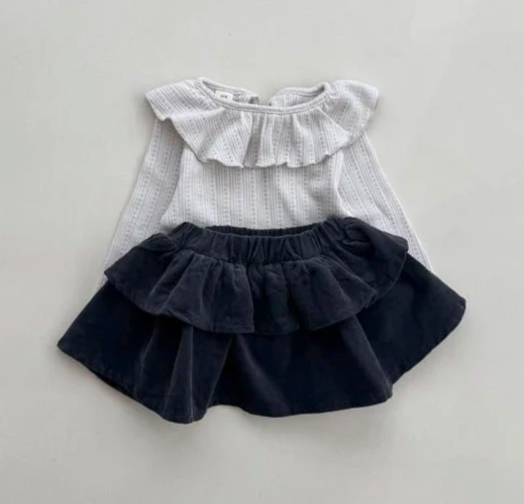 Long sleeve frill collar top.
