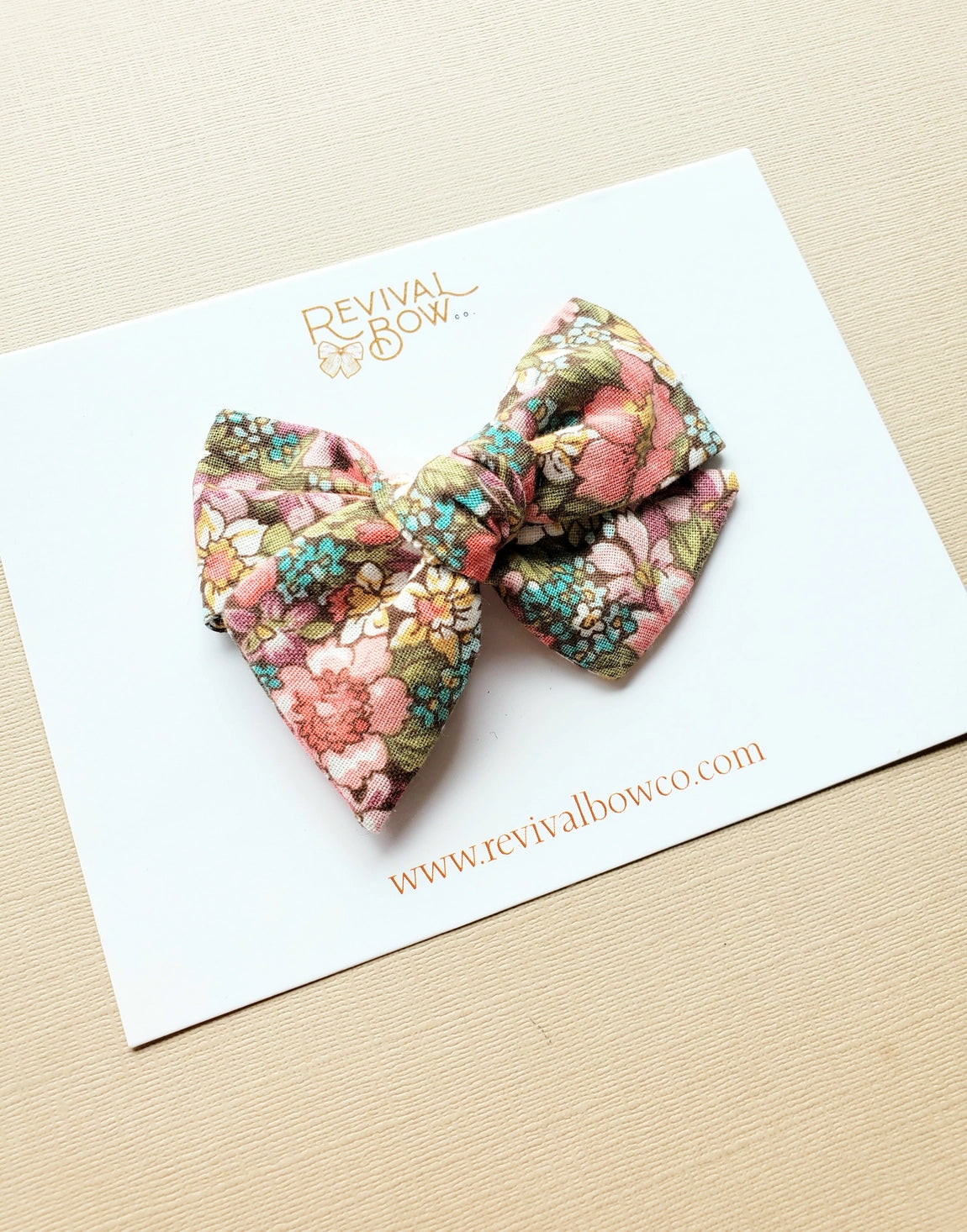 Discover bows that are one-of-a-kind treasures. Each piece is lovingly handcrafted—cut, sewn, and tied with care by skilled hands. Comes standard with a clip. Handmade for little ones from start to finish.