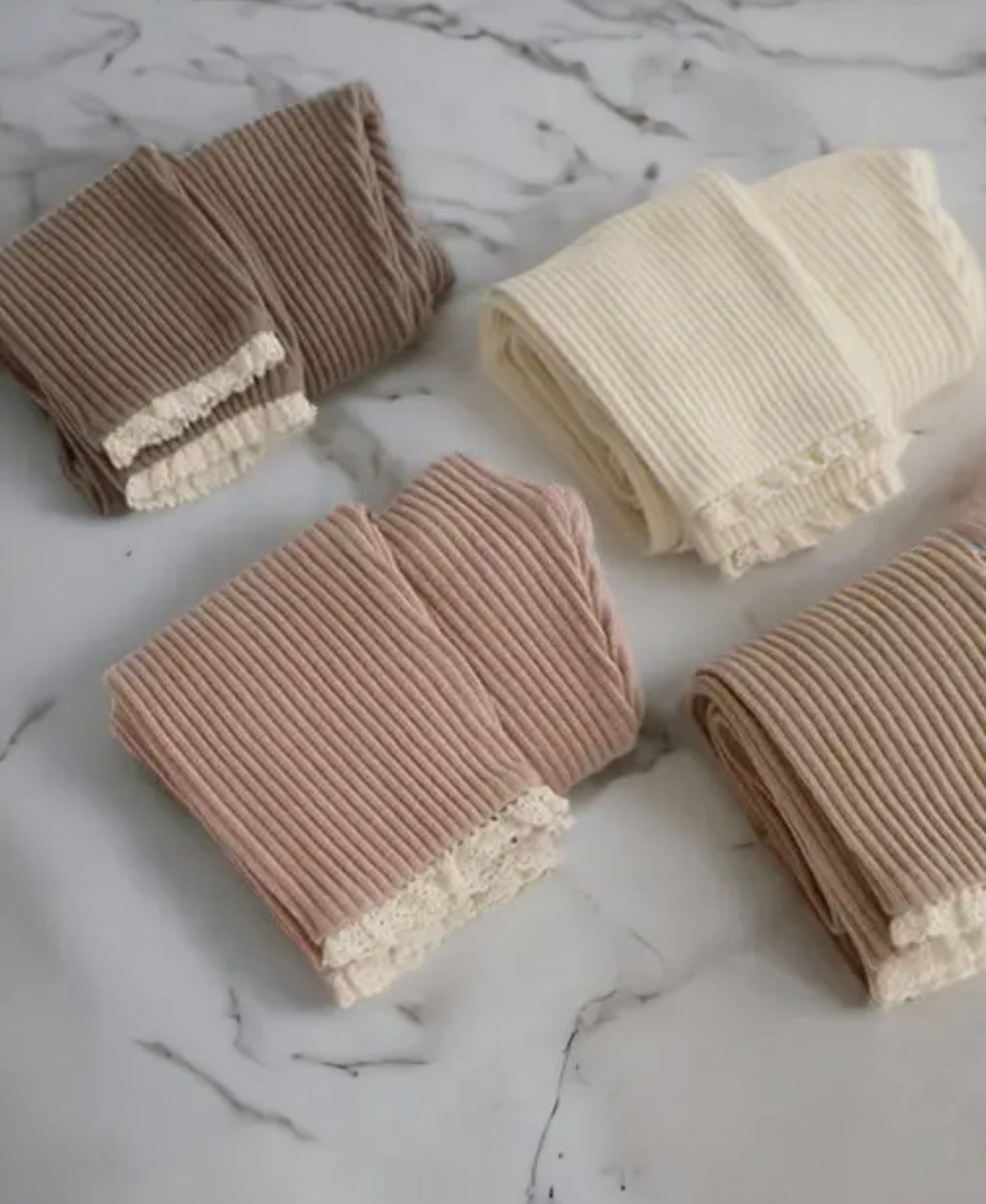 Dusty pink, organic cotton leggings with charming ruffle at the bottoms.